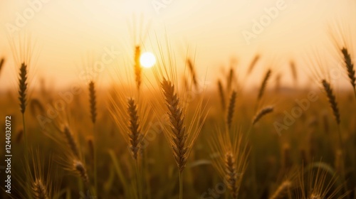 Golden Wheat Field at Sunrise with Warm Glow and Soft Light