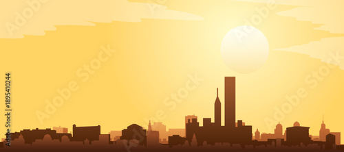 Golden yellow panoramic poster of the city skyline with misty background buildings and clouds of CHICAGO, ILLINOIS