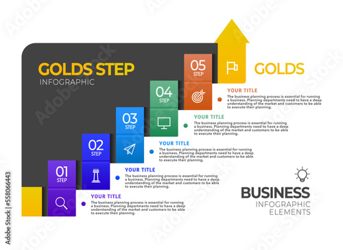 golds step business Infographic template , process options steps , colorful vector infographic stock vector illustration