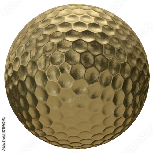 Golf ball gold isolated transparent background 3d rendering