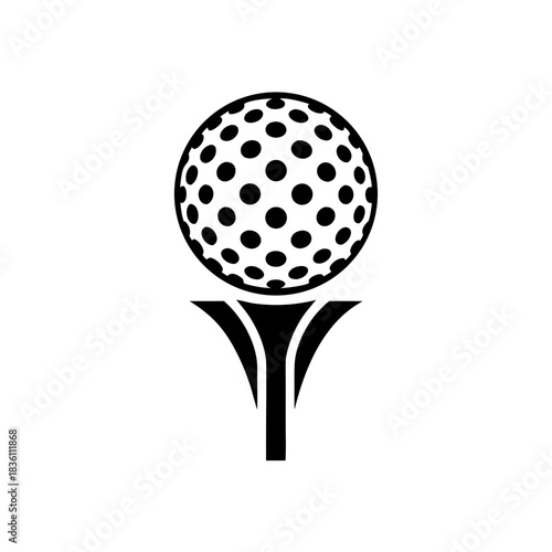 Golf ball on tee black and white art on transparent background silhouette