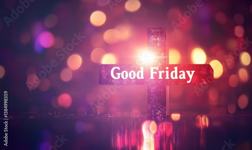 Good Friday - lettering calligraphy with glowing cross or crucifix. Christian religious holiday.