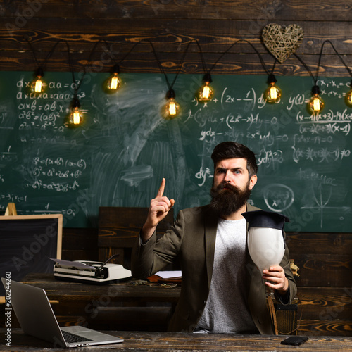 Good tutors are often communication masters, Education graduation and people concept - successful tutor in mortar boards, University seminar conference team collaboration concept,