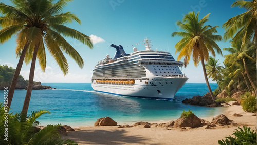 Gorgeous cruise ship, tropical beach paradise