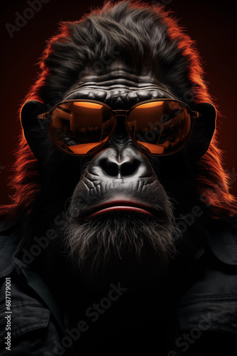gorilla wearing sunglasses portrait on a black background