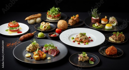 Gourmet Food Platter Presentation - An elegant arrangement of diverse gourmet appetizers and small plates, perfect for a luxurious dining experience