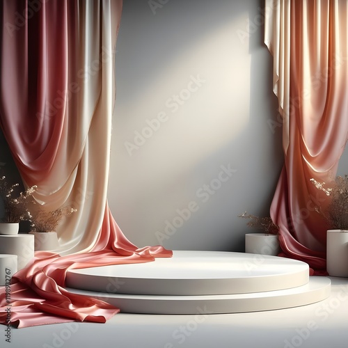 Graceful Ceramic Square Podium with Silk Fabric Draping