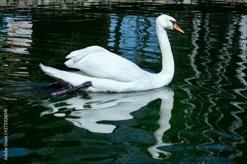 graceful white Swan swimming in the lake