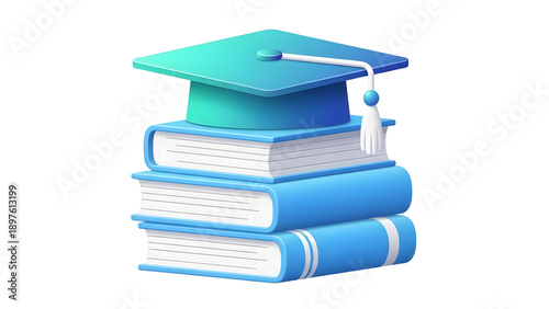Graduation cap on stack of books isolated on transparent background