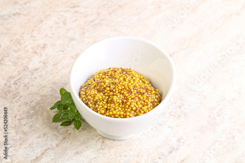 Grain mustard sauce in the bowl