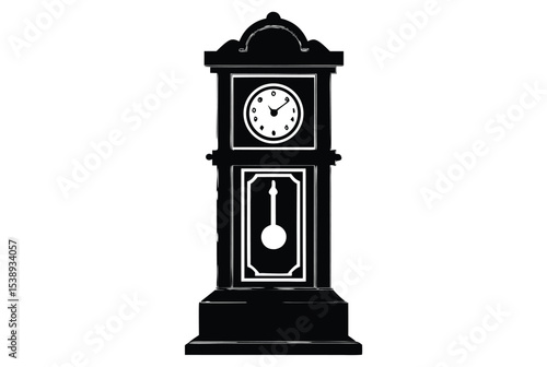 Grandfather Clock Silhouette Vector Illustration Classic Timepiece Design Isolated