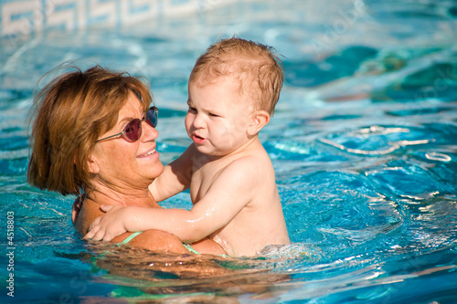 Grandmother swimming with grandson