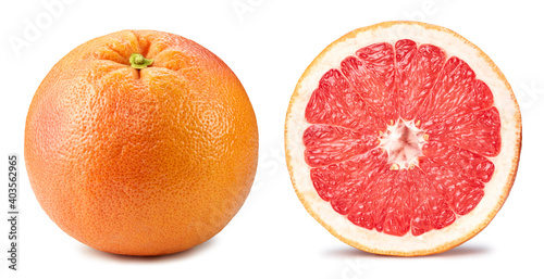 Grapefruit collection. Grapefruit with clipping path isolated on a white background. Fresh organic vegetable. Full depth of field