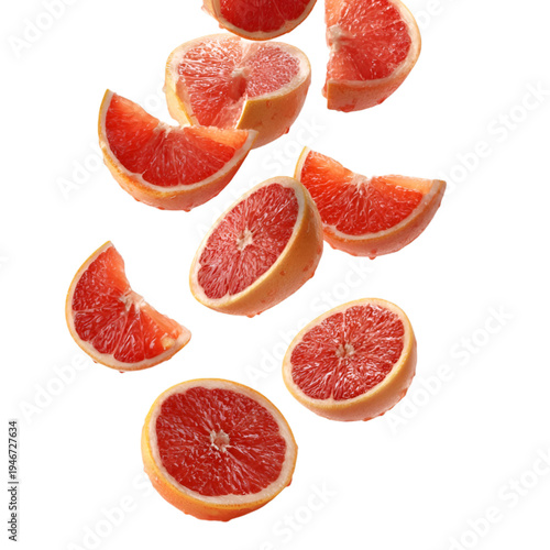 Grapefruit slices isolated on black background for healthy eating and nutrition concepts