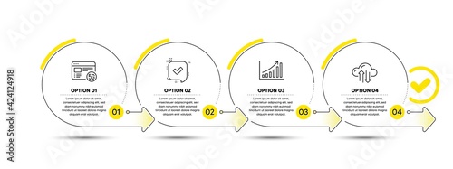 Graph chart, 5g internet and Confirmed line icons set. Timeline process infograph. Cloud sync sign. Growth report, Wifi quality, Accepted message. Synchronize storage. Business set. Vector