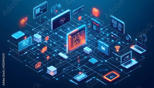 Graphical Visualization of a Connected IoT Network, Nodes and Devices Linking Together
