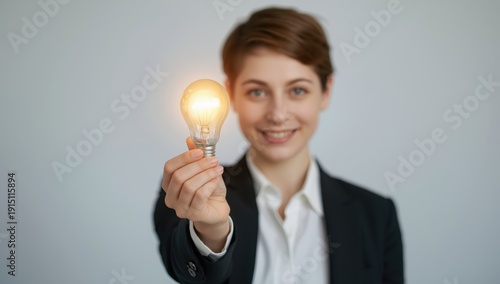 grasping lit bulb, concept of creativity and new ideas