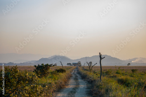 Grassland scenery at Pobitora Wildlife Sanctuary, Assam, India, where open plains stretch across the floodplain, shaped by seasonal waters and rich wildlife.