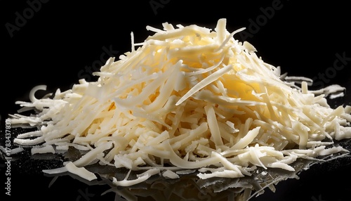 Grated Mozzarella Cheese On Black Background Shredded Mozarella Texture