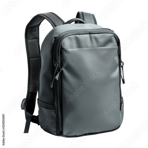 Gray Backpack White Background on transparent background.