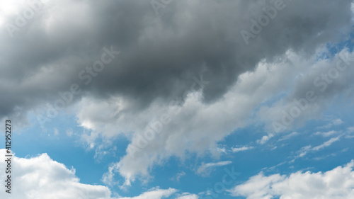 gray clouds. The sky before the rain and thunder. blue sky over gray clouds
