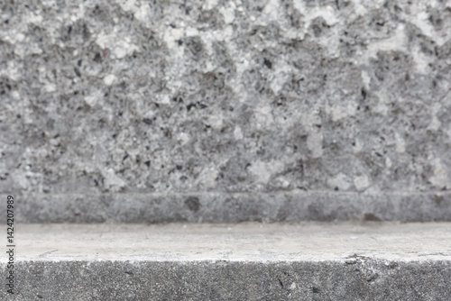 Gray empty concrete table stone podium empty copy space place mock up. Empty wall and table concrete texture template. Mock up for product placement and advertisement. Stone table podium. Gray step
