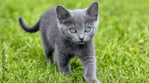 Gray Kitten in Grassy Yard