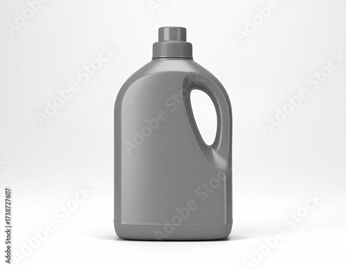 Gray plastic bottle with handle; neutral background