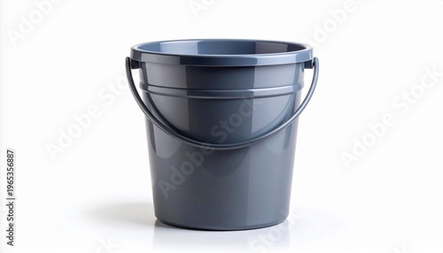 Gray Plastic Bucket with Handle on White Background Studio Lighting