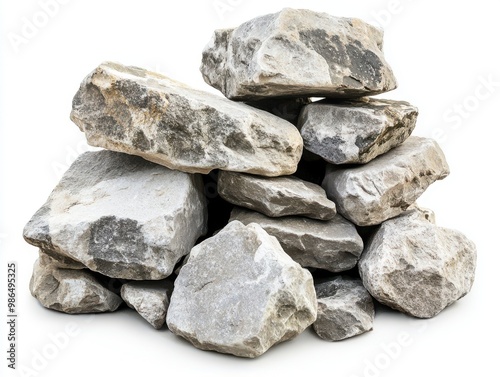 Gray Stones Pile Isolated on White Background