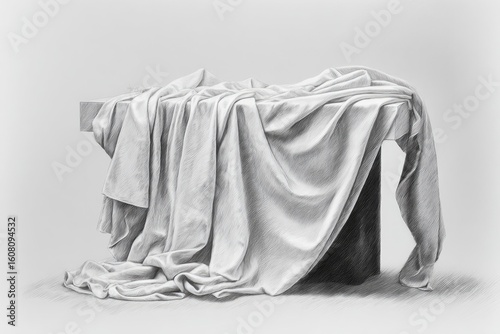 Gray-scale draped fabric on a block