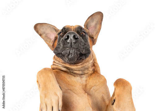 Great Dane close up portrait with big ears isolated on white studio background