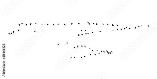 Greater white-fronted goose wedge in flight. Vector silhouette a flock of birds