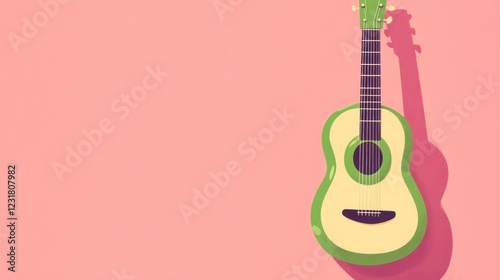 Green acoustic guitar on pink background.
