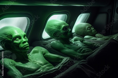 Green aliens spaceship. Travel light. Generate Ai