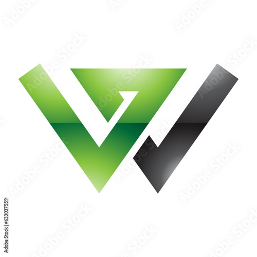 Green and Black Glossy Letter W Icon with Intersecting Lines