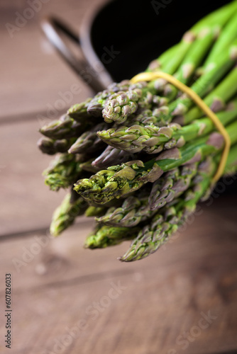 Green asparagus on a wood table