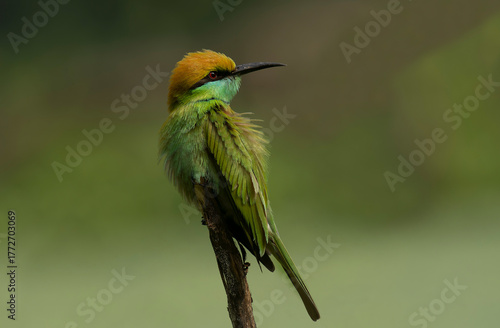 Green Bee-eater (Merops orientalis) perched on a branch in natural habitat