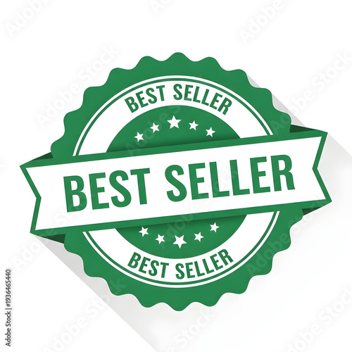 Green best seller badge with stars on white background