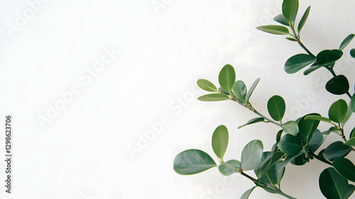 Green Branches on White: Lush green foliage of a plant with vibrant leaves arranged artfully against a clean white backdrop. Perfect for adding a touch of nature to your designs.
