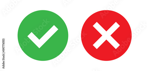 Green check mark and red cross mark icon. Vector illustration