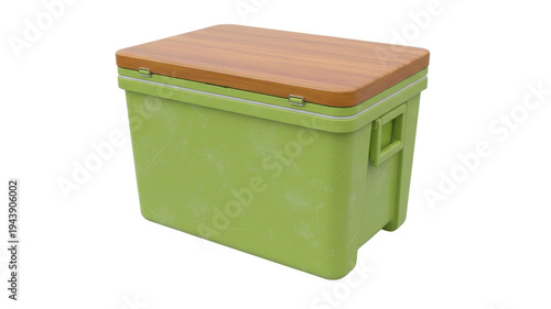 Green cooler with wood lid on white background