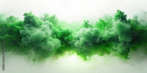Green fog floating in a render, with cut out effect, misty, atmospheric, hazy, mysterious, surreal, dreamy, abstract