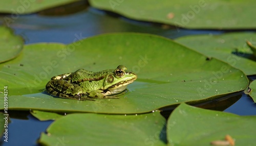 Green frog on a lily pad