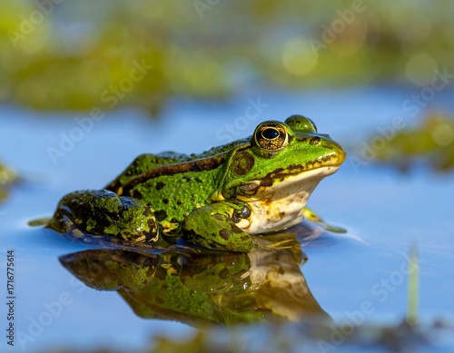 Green frog on water