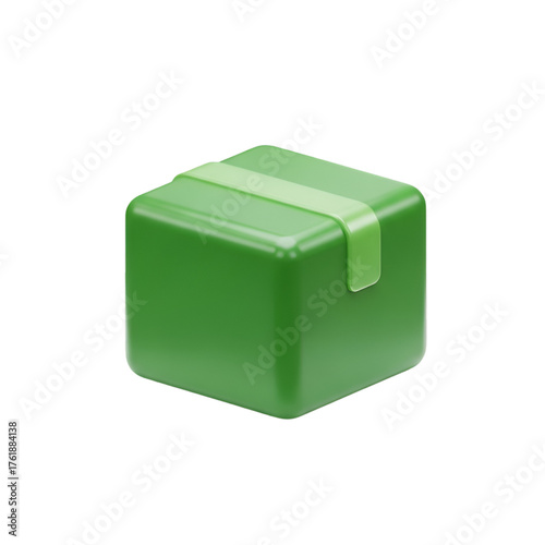 Green gift box with ribbon isolated on transparent background, 3d rendering