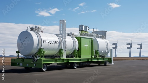Green hydrogen production concept with hydrogen pipeline and wind turbines in the background
