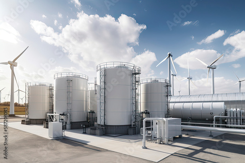 Green Hydrogen renewable energy production facility - green hydrogen gas for clean electricity solar and windturbine facility
