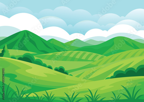 Green landscape vector illustration for website background and nature themed graphic design projects