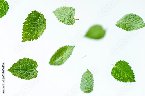 Green Leaves Falling on a White Background